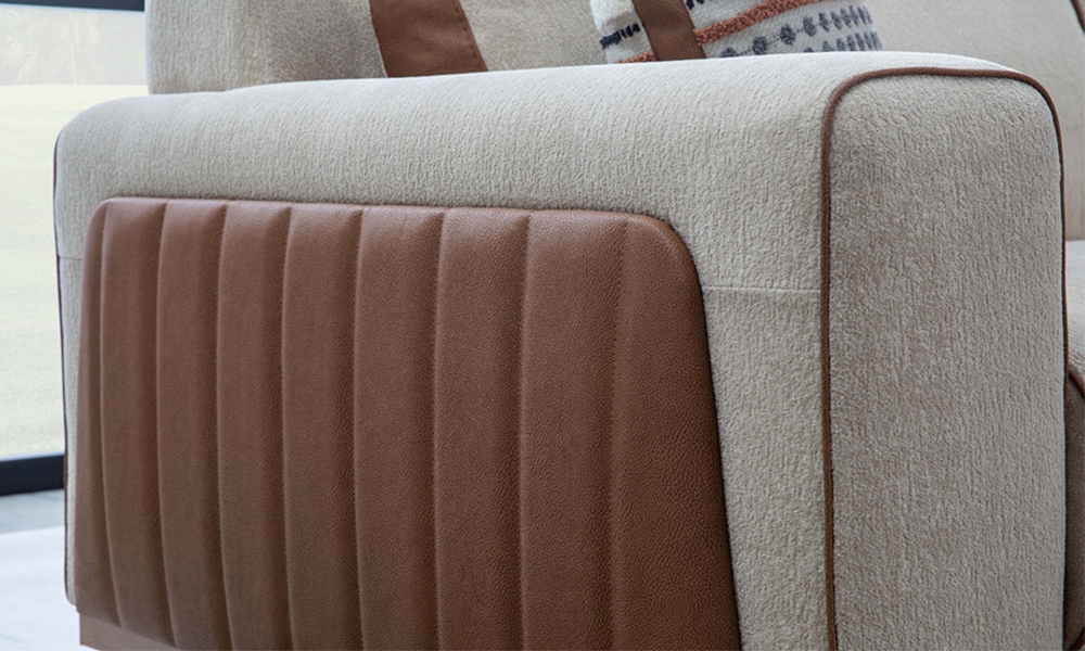 • Arm Design: Two arms upholstered in a contrasting fabric colour, selectable as per client preference.