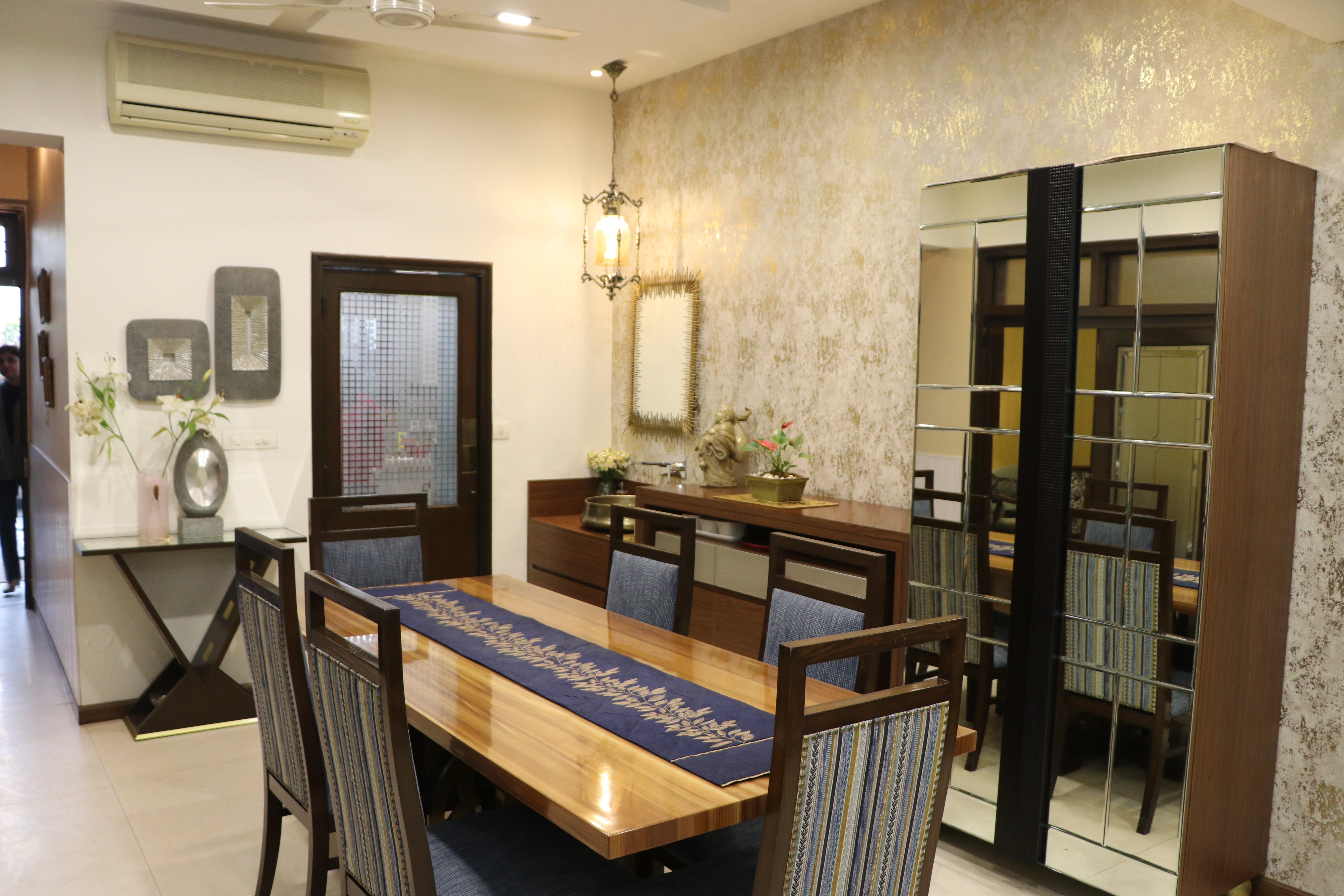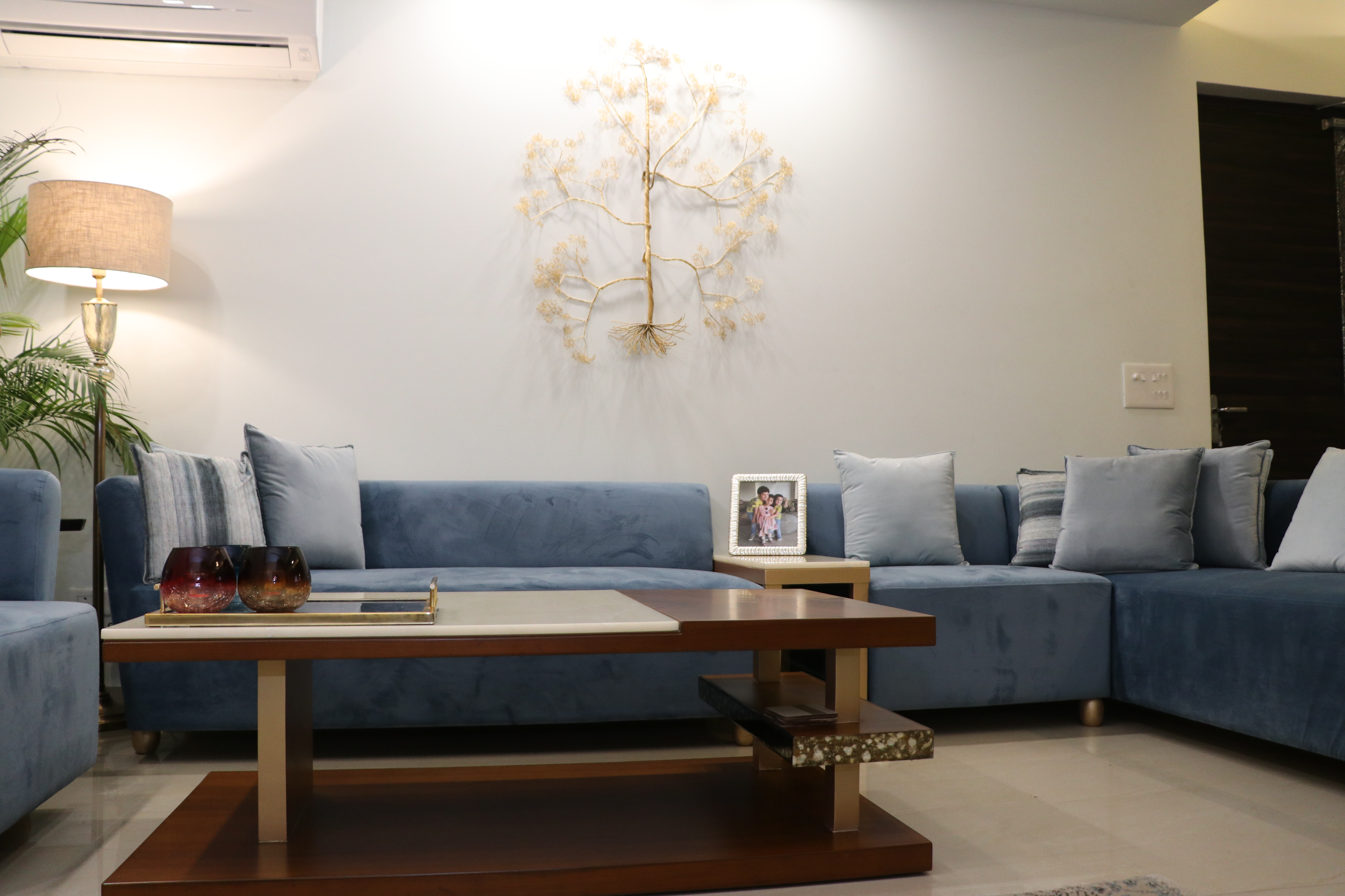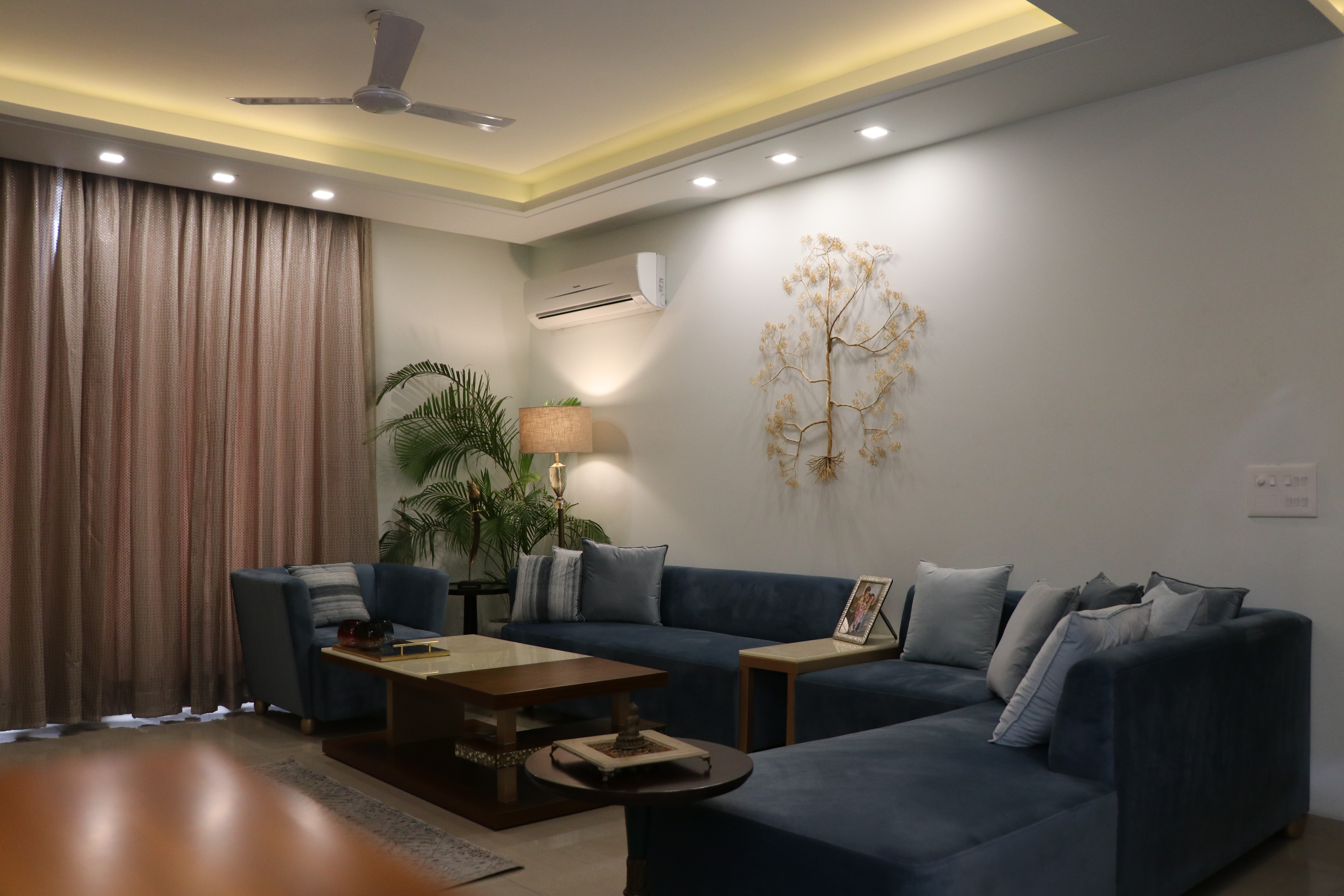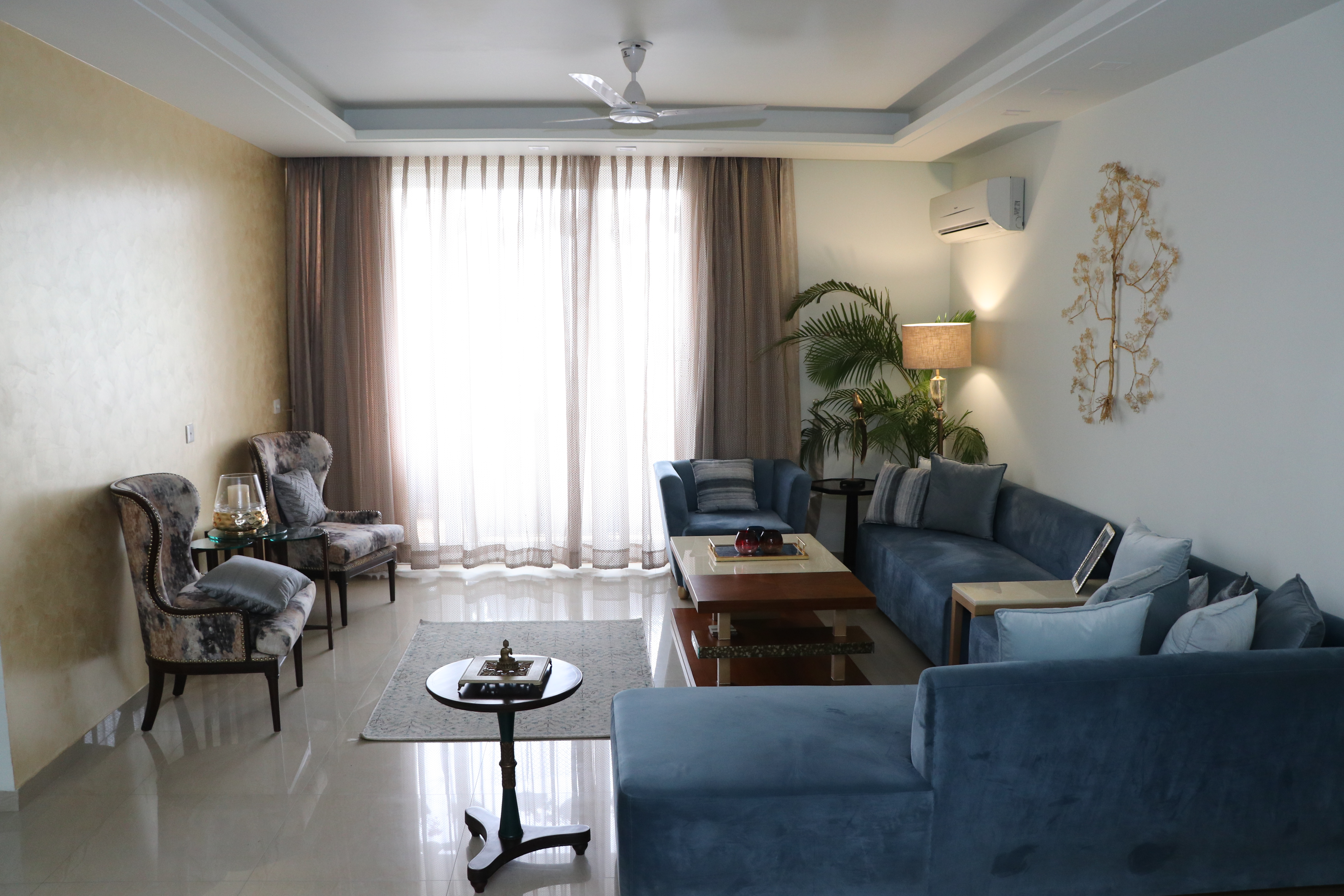 Designed as a cohesive, full-apartment experience, this home carries a calm, contemporary language throughout its spaces. A soft neutral base is paired with muted blues and warm wood tones to create visual continuity and a sense of understated luxury. Each area is planned to feel open yet defined, balancing comfort with clean lines and thoughtful detailing. Layered lighting, tactile finishes, and curated furniture pieces add warmth without visual clutter, ensuring the apartment feels both refined and easy to live in. The overall design prioritizes flow, functionality, and timelessness, resulting in a home that feels composed, welcoming, and effortlessly elegant.